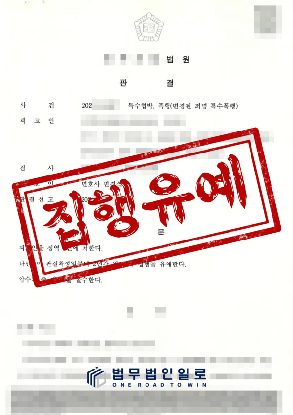 이에 다행히도 재판부에서는 특수협박, 특수폭행 혐의에 대해 집행유예 선고를 해주었습니다.