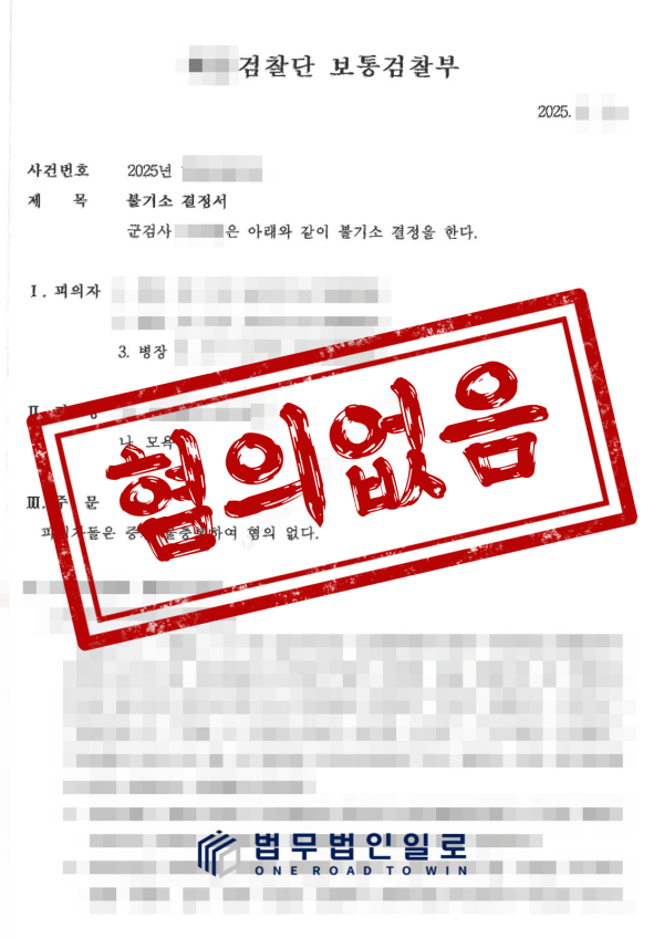 이에 다행히고 군사검찰은 일로 변호인단의 주장을 모두 받아들여 의뢰인의 모욕 혐의에 대해 혐의없음 결정을 내려주었습니다.