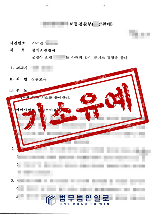 이에 다행히도 군사검찰은 의뢰인의 주장을 받아들여 의뢰인의 상관모욕 혐의에 대해 기소유예 처분을 내려주었습니다.
