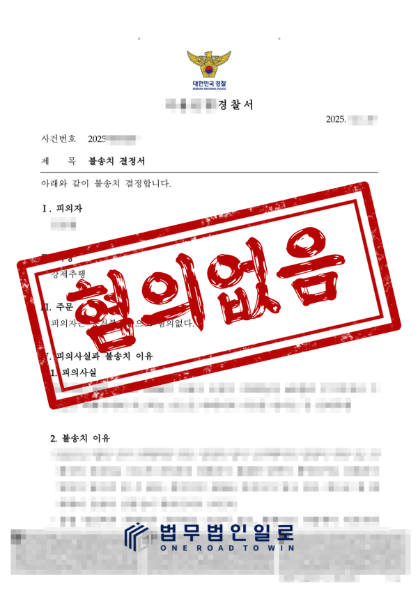 법무법인 일로 변호인단은 경찰조사 단계에서 ① 피해자의 112 신고 당시 진술과 이후 정식 조사 진술 사이에 구체적인 차이가 존재하는 점, ② 사건 발생 이후에도 의뢰인과 피해자 사이에 다수의 통화 내역이 확인된 점, ③ 사건 현장 CCTV 및 통화녹음 파일에서도 피해자가 명확히 거부 의사를 표시한 정황이 확인되지 않은 점, ④ 의뢰인이 피해자의 개인적 상황을 상세히 알고 있을 만큼 친밀한 관계였던 점 등 당시 상황을 종합적으로 분석했을 때 강제성·폭행·협박의 존재를 입증할 객관적 증거가 부족하다는 점을 근거로 무혐의를 주장해 나갔습니다.