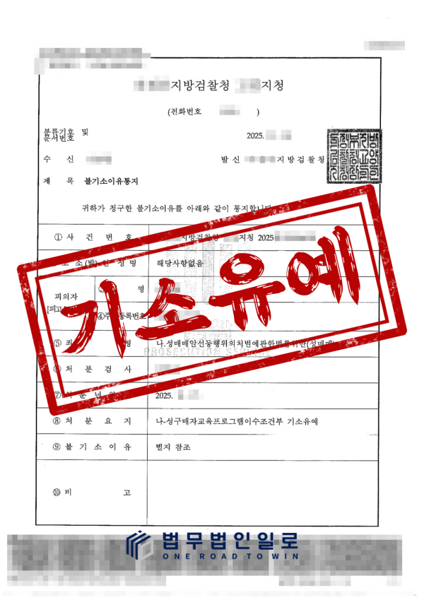 이에 다행히도 검찰은 법무법인 일로의 조력을 받아들여 의뢰인의 성매매 혐의에 대해 기소유예 처분을 내려주었습니다.