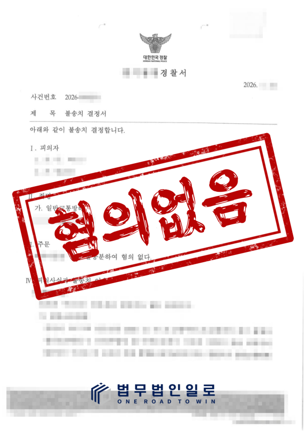 이에 경찰에서는 법무법인 일로의 주장을 모두 받아들여 의뢰인에게 불송치결정, 즉 혐의없음 결정을 내려주었습니다.